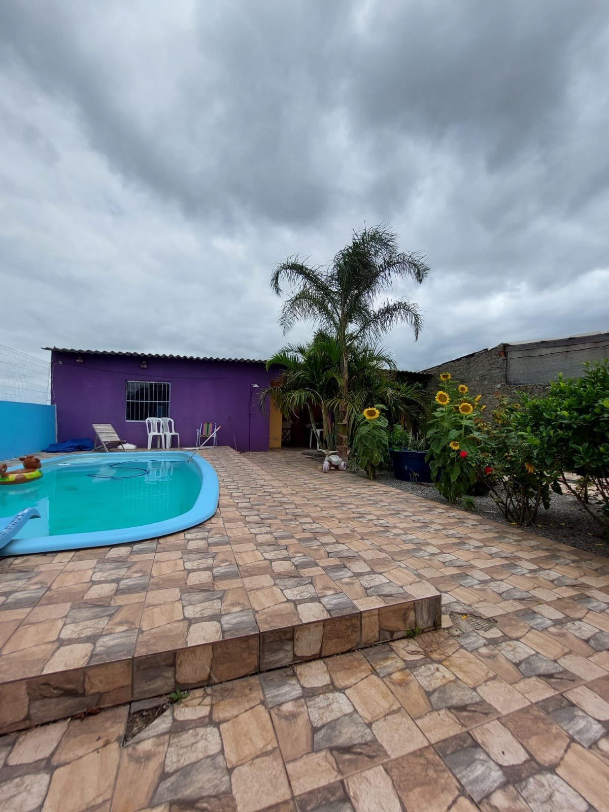 - Quintal grande com piscina e uma linda plantação de girassóis
